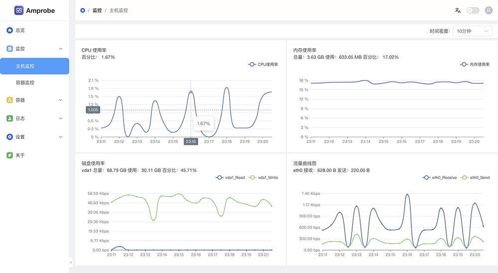 Amprobe是一款轻量级主机及Docker容器监控工具,它可以轻松的帮助我们完成以下几方面的工作:
